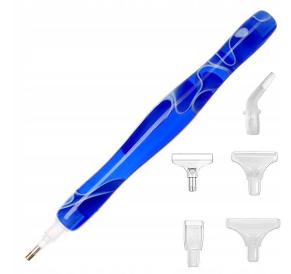 Pieštukas, skirtas dėlioti deimantines mozaikas. Su skirtingais antgaliais. Spalva: tamsi mėlyna