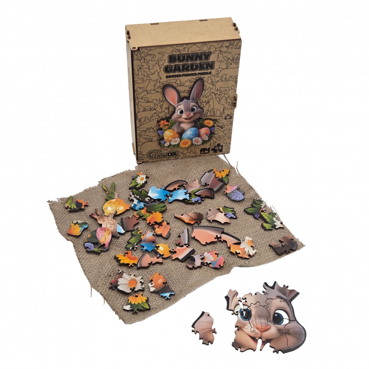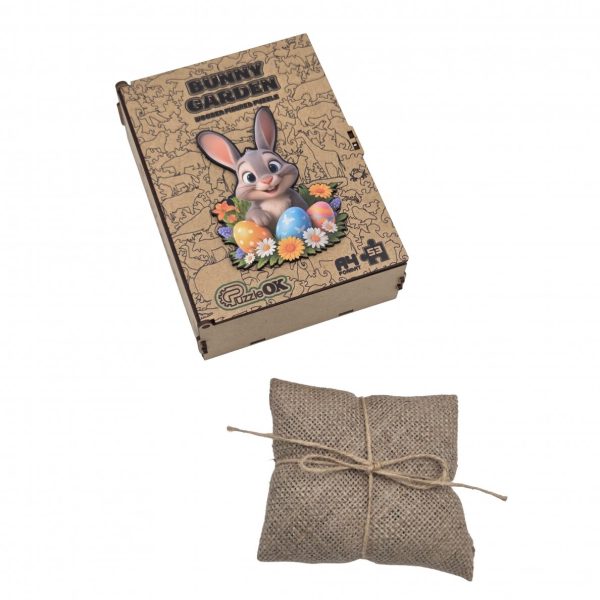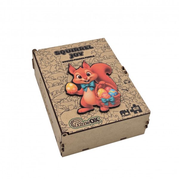 Medinė dėlionė „Voveraitė su margučiais“ – išskirtinis įpakavimas ir prasmingas laisvalaikis.